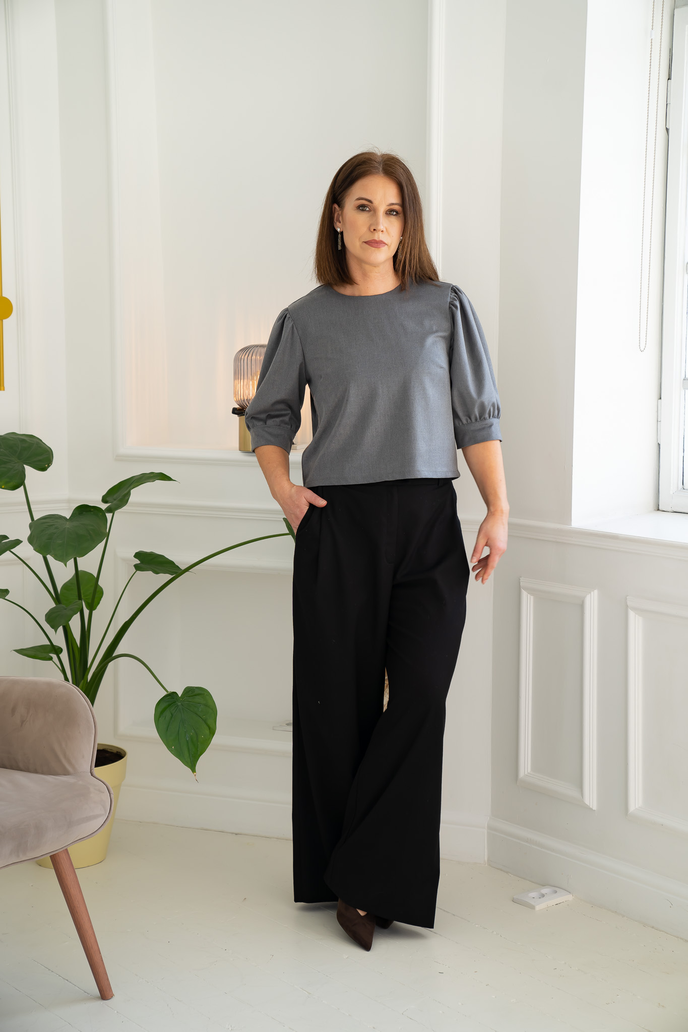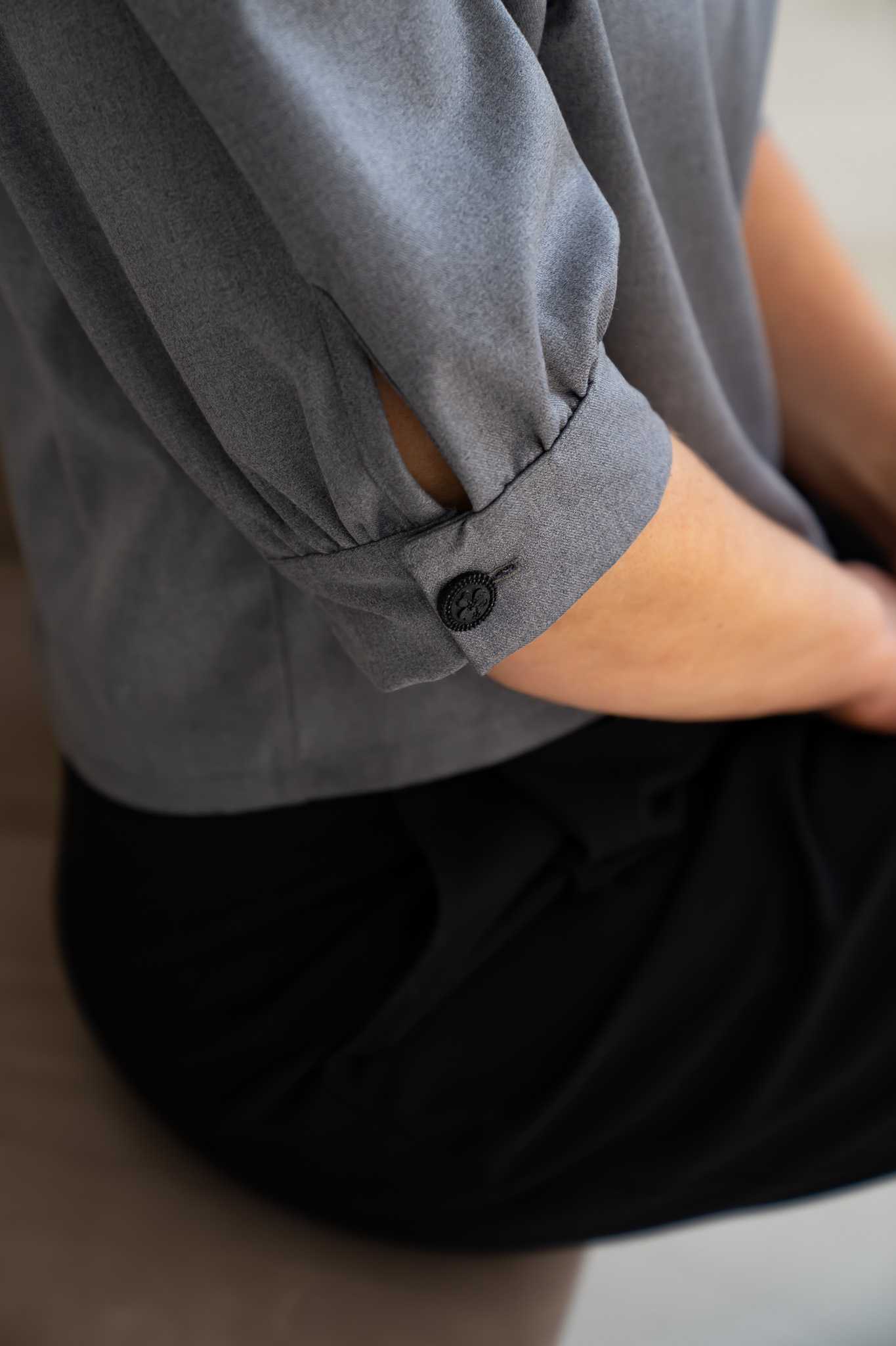Charming wide-sleeve top from the CAMI set. Crafted from medium-weight fabric, it gives structure to the voluminous sleeves. The top has a slightly cropped length, making it easy to pair with CAMI skirts, any style of trousers (such as MAASA palazzo pants), or various skirts. Its rich gray tone allows for effortless styling with a variety of outfits.