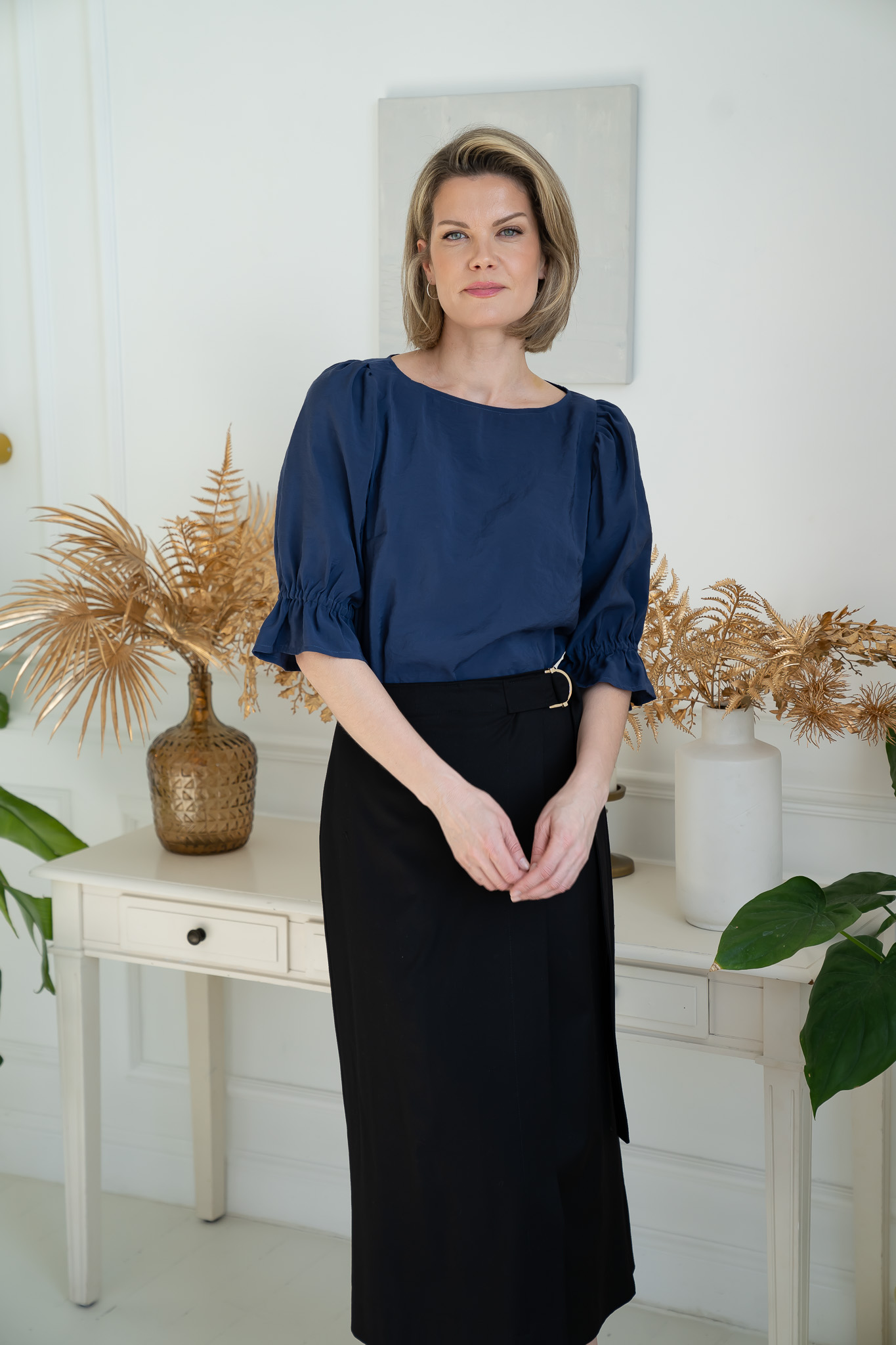 Delicate and airy, this blouse embodies a subtle romantic spirit. Crafted from soft, lightweight viscose fabric, it drapes gracefully, allowing the skin to breathe and move freely. The design features a classic, feminine silhouette enriched with gently flared sleeves, finished with elastic gathers at the cuffs — a refined detail that adds volume and softness to the shape. Its pastel, tender shades highlight the blouse’s graceful character, making it a versatile choice for any occasion. Pair it with tailored trousers or an elegant skirt for a sophisticated look, or wear it with your favourite jeans for a more effortless, everyday charm. The result is a timeless piece that feels as light as air — romantic, graceful, and effortlessly chic.