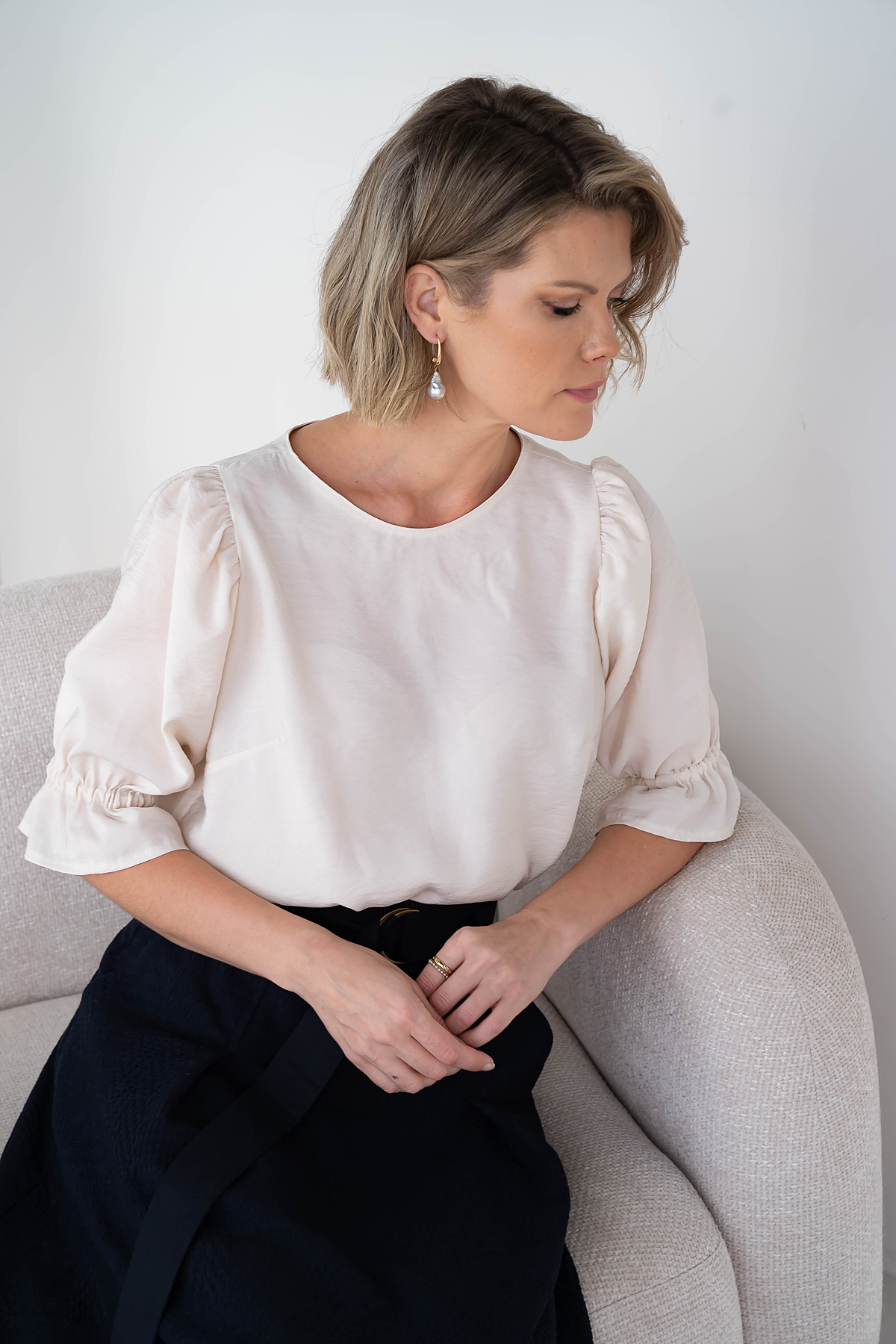 Maiga un gaisīga blūze romantiskās noskaņās. Radīta no viegla viskozes auduma. Klasisks piegriezums, ar paplatinātām piedurknēm un savilkumu tās galos. Šī maigajos pasteļtoņos radītā blūze lieliski izskatīsies gan ar klasiskām biksēm, svārkiem, gan ar tavām mīļakajām džinsu biksēm.