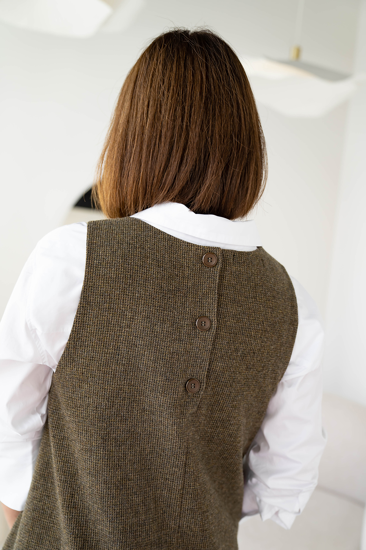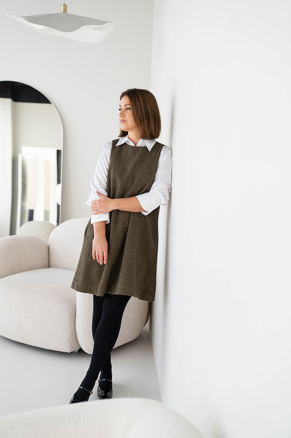 Izgatavots no augstas kvalitātes vilnas un kašmira, šis sarafāns ir ideāls risinājums vēsākiem laika apstākļiem, nodrošinot siltumu un vieglumu, kas ļauj justies komfortabli visas dienas garumā.Smalkas un maigas vilnas sarafāns ar dekoratīvām pogām mugurpusē būs lieliska izvēle vēsās sezonas laikā. Sarafānam ir burvīgs zaļgani rūtots, viegls vilnas materiāls. Izteiktā trapeces forma, padara to ērtu ikdienā. Vilnas sarafāns būs ideāli kombinējams gan ar elegantu blūzi, siltu džemperi vai brīva piegriezuma kreklu. Izvēle paliek Tavā ziņā! Ieskaties MAASA piedāvājumā, kur atradīsi gan blūzes, gan topus, gan kreklus ar kuriem izdosies ideāls salikums!